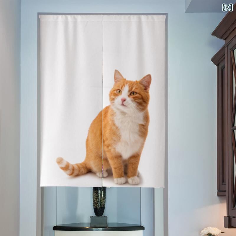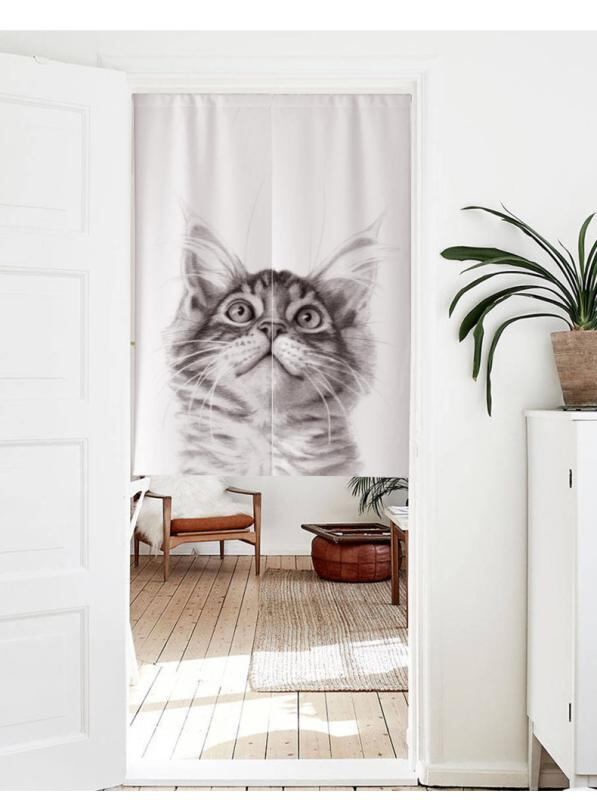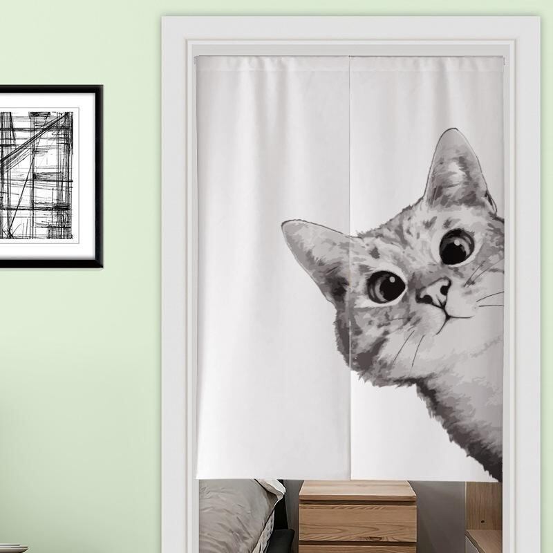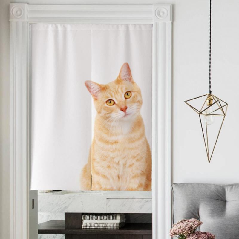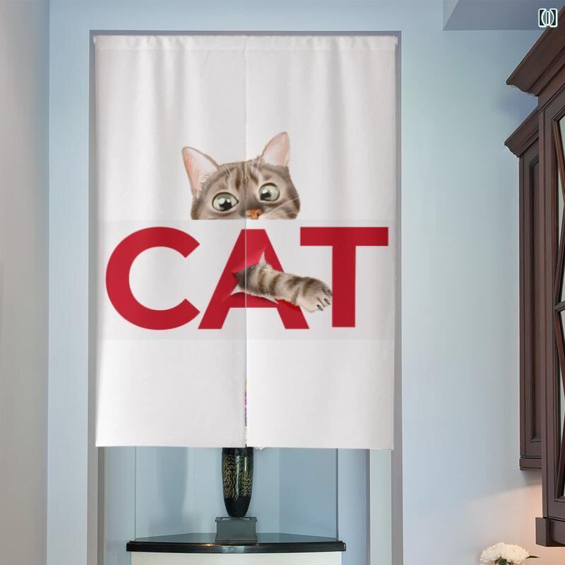 のれん 北欧風 和風 綿麻 布製 猫柄 中央割れ 間仕切り 目隠し キッチン リビング ダイニング 浴室 トイレ おしゃれ