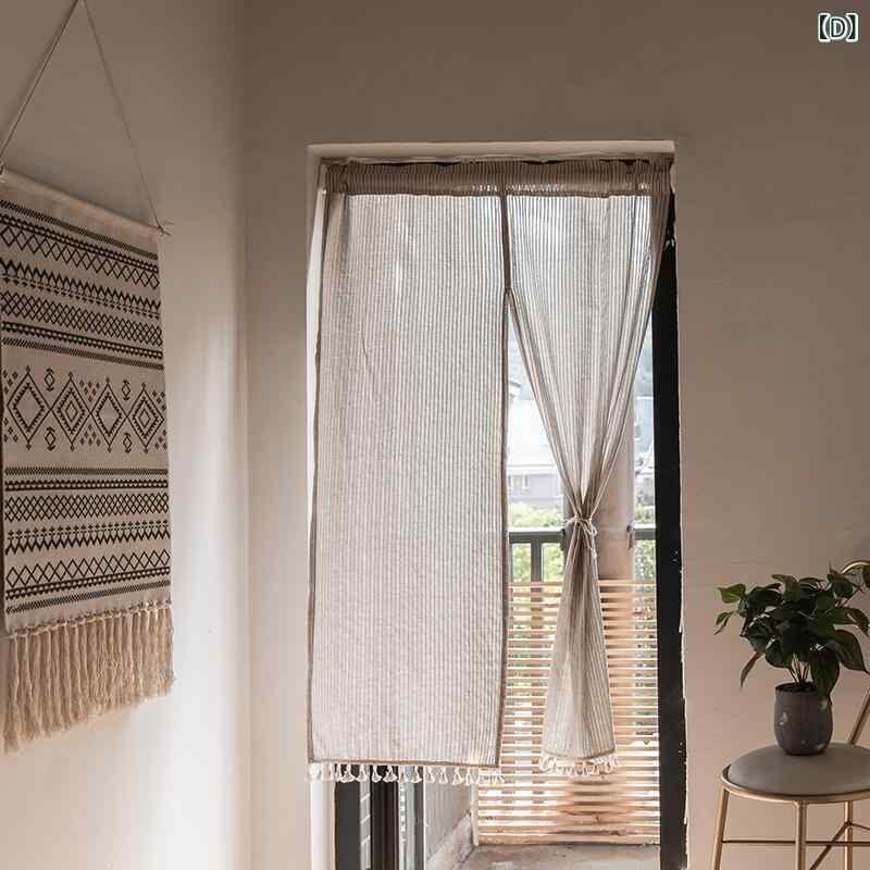 のれん 和風 つっぱり式 布製 遮光 目隠し 間仕切りカーテン 寝室 リビング キッチン トイレ 洗面所 ポリエステル 綿混 チェック柄 ストライプ柄 ナチュラル シンプル フリンジ付き
