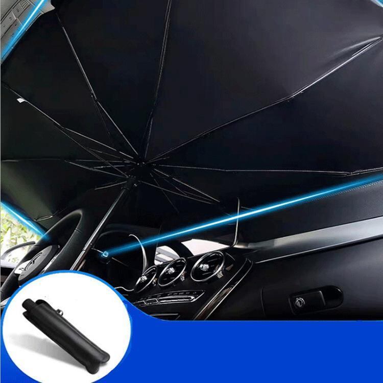 サンシェード 自動車 フロントガラス用 傘型 折りたたみ式 日よけ 遮光 遮熱 断熱 UVカット シルバーコーティング チタンシルバー コンパクト収納