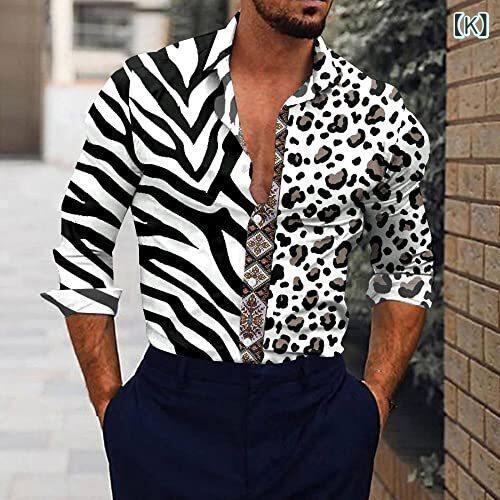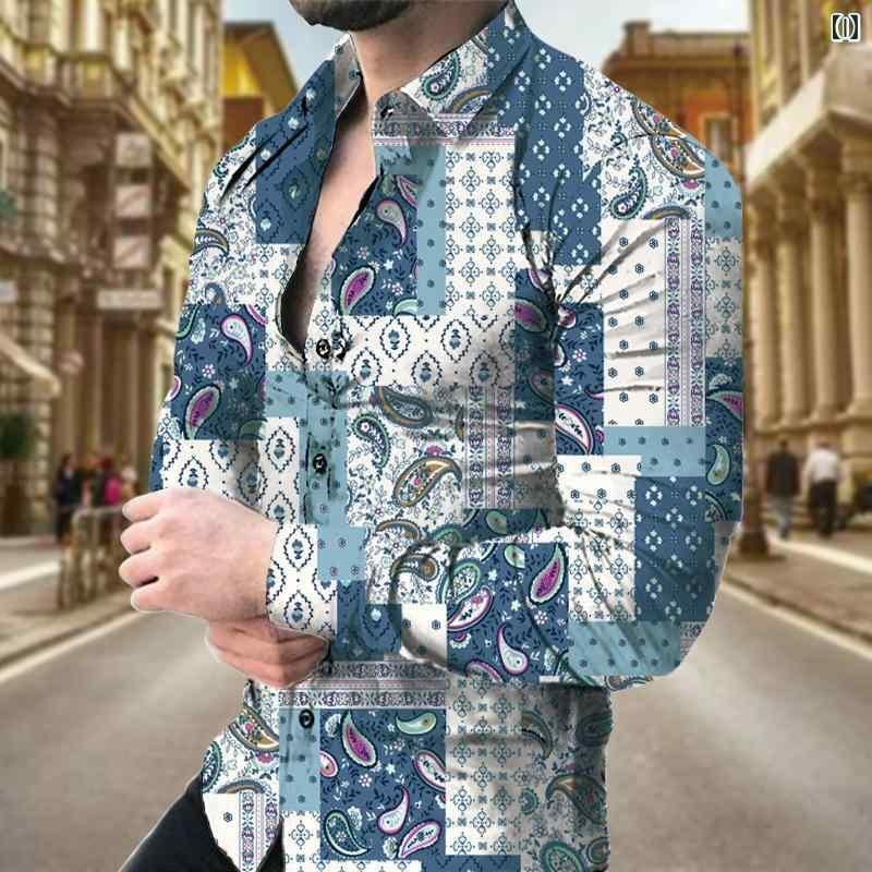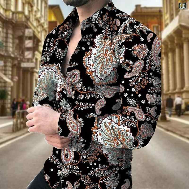 シャツ メンズ 春夏 ポリエステル混紡 デジタルプリント ペイズリー柄 小花柄 長袖 襟付き スリムフィット カジュアル 普段使い