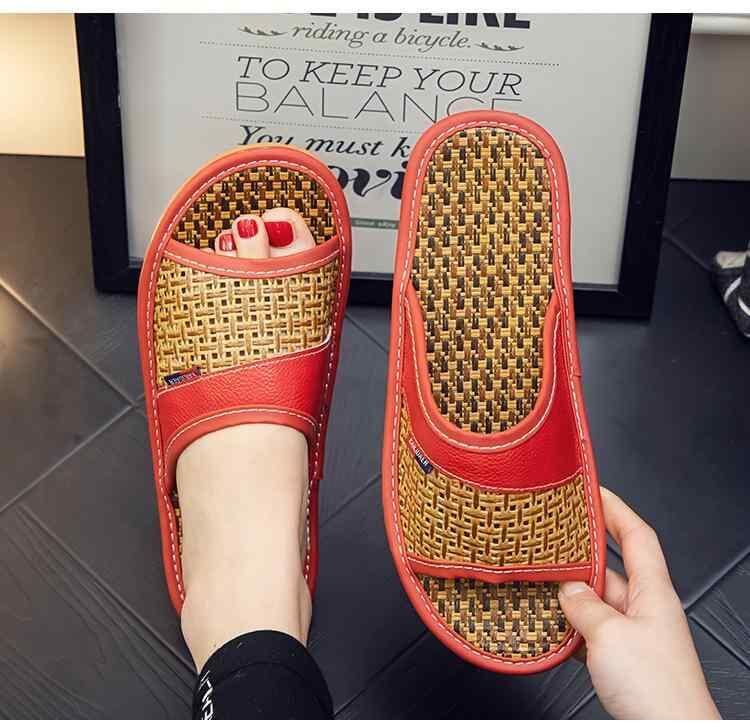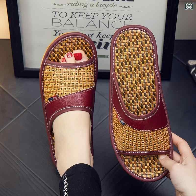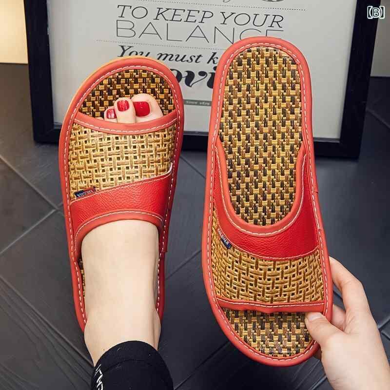 スリッパ 男女兼用 室内履き 春夏 草編み リネン 藤素材 本革 防滑 家庭用 フローリング対応 涼感 PVC底 通気性 カップル ペア カジュアル