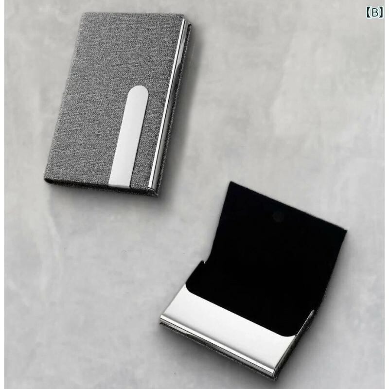 名刺入れ メンズ 男性 ゴールド ステンレス製 PUレザー ビジネス カードケース メタルケース 高級感 シンプル 携帯用 スリム コンパクト 大容量 25枚収納