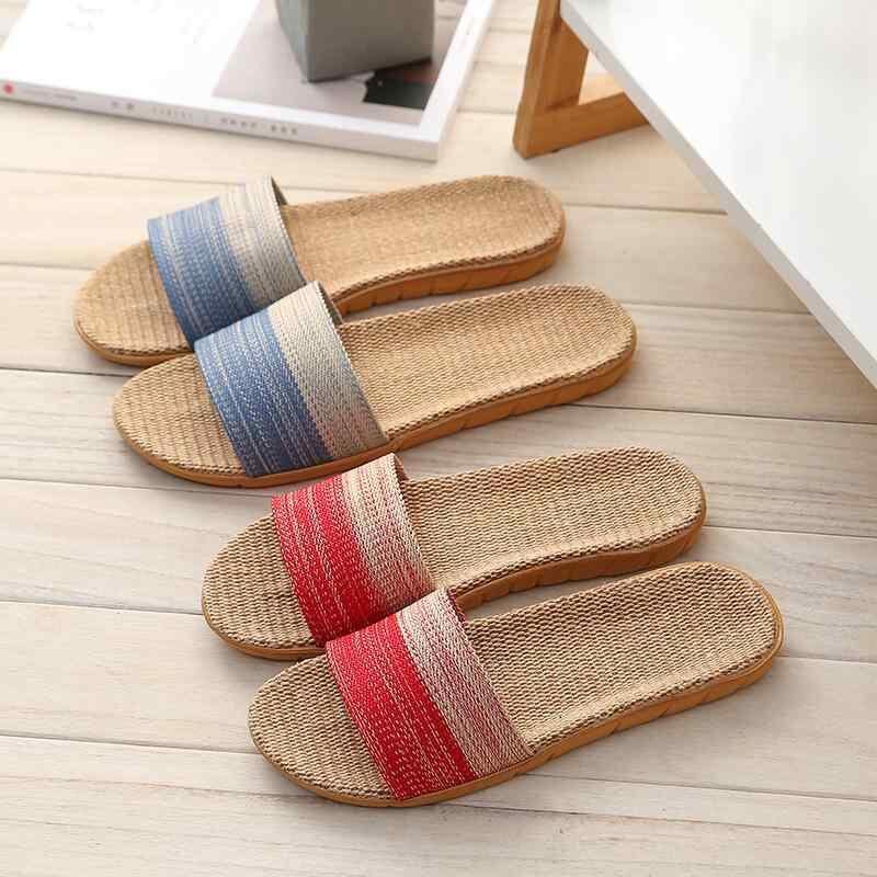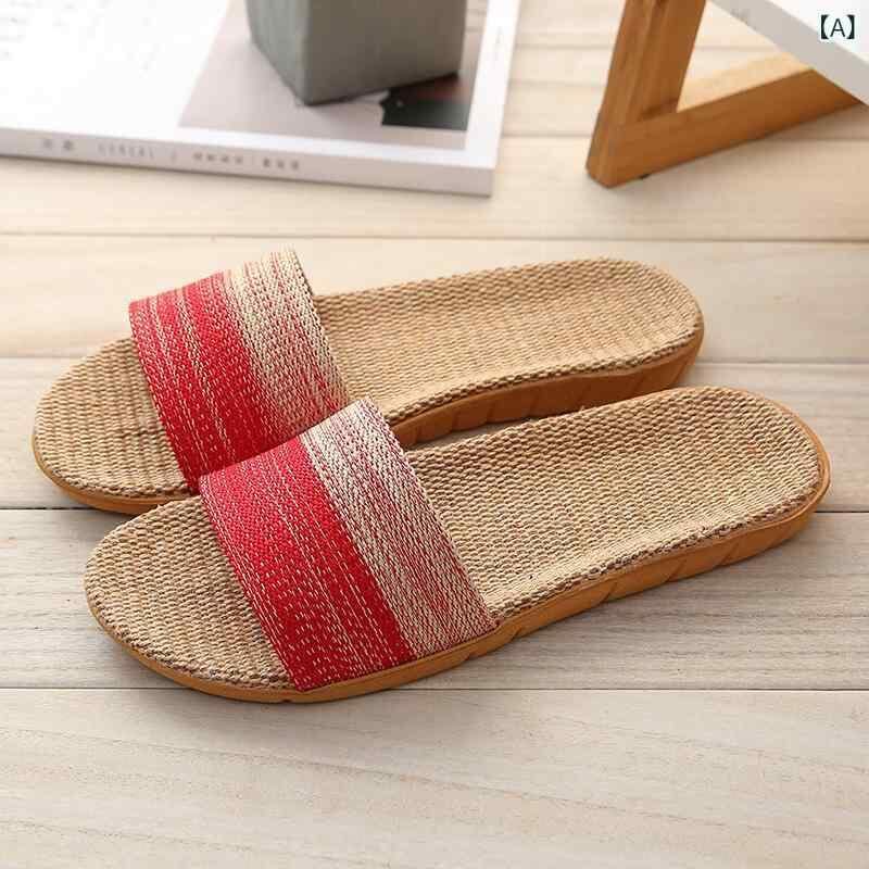 スリッパ ルームシューズ 男女兼用 カップル 春夏 麻 吸湿速乾 通気性 滑り止め 厚底 オープントゥ EVA サンダル 室内履き 部屋履き フローリング対応 クッション性