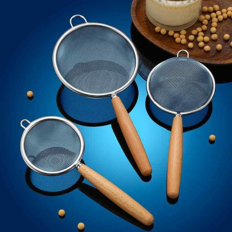 キッチンツール ストレーナー 304ステンレス製 木製ハンドル 滑り止め ミニ 粉ふるい 網じゃくし 豆乳 ジュース フィルター 製菓 お菓子作り 家庭用 調理用