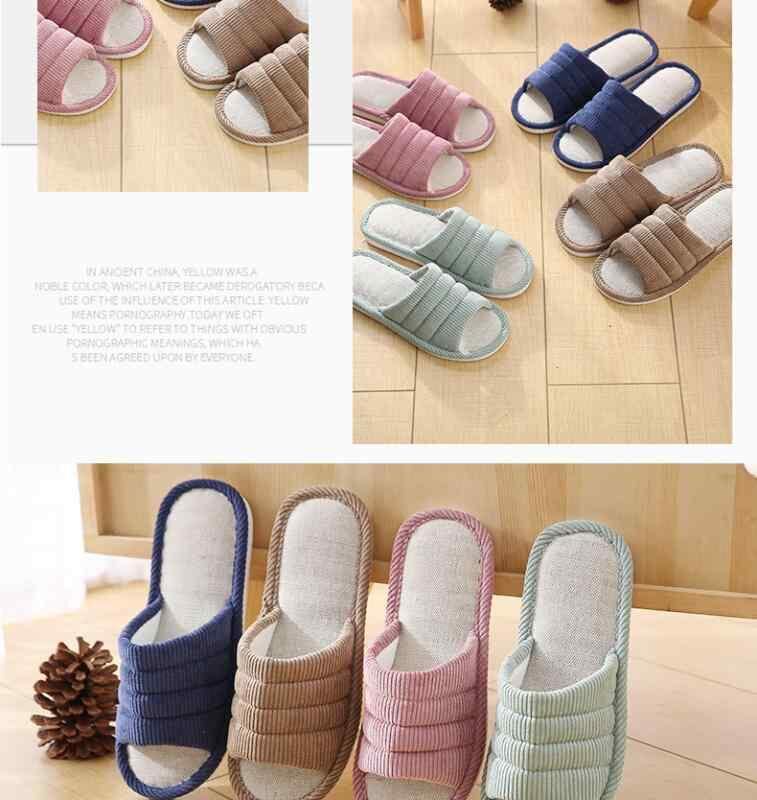 ルームシューズ 男女兼用 カップル用 コーデュロイ リネン素材 ストライプ柄 シンプル 韓国風 快適 軽量 スリッパ 室内履き