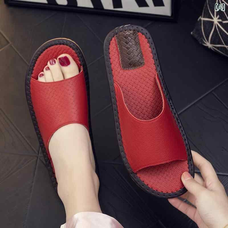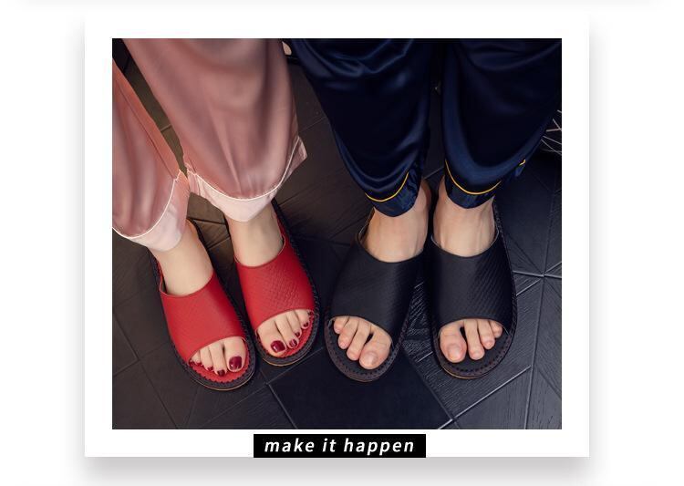 スリッパ サンダル 男女兼用 カップル 本革 牛革 室内履き ルームシューズ ソフトソール 滑り止め ノンスリップ 春夏 通気性 オープントゥ PVCソール 木製フローリング 普段使い レッド ブラック ブルー