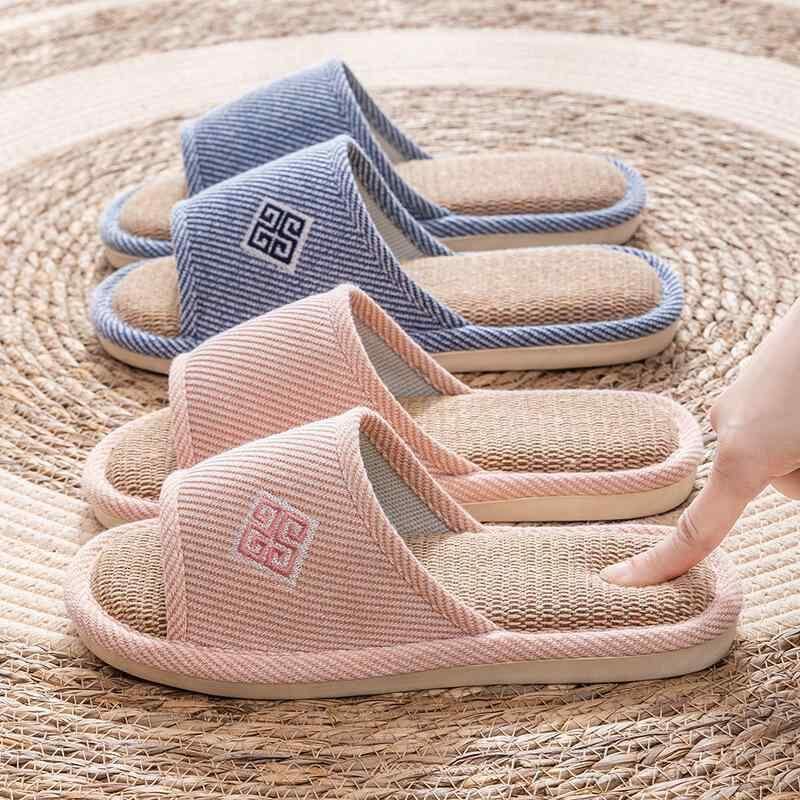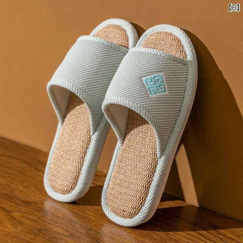 スリッパ 男女兼用 カップル用 麻 リネン 布製 室内履き ルームシューズ オールシーズン対応 滑り止め 厚底デザイン 快適 通気性 吸湿速乾