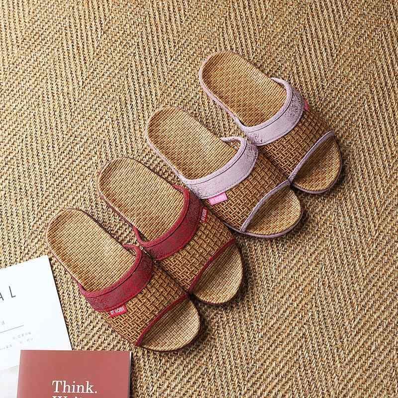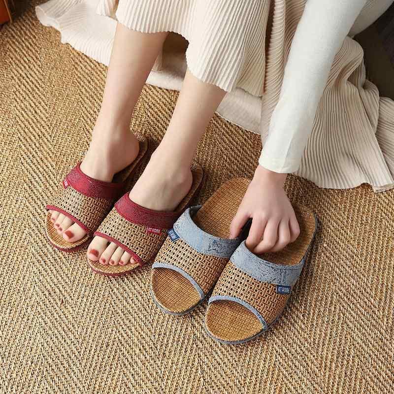 ルームシューズ スリッパ 男女兼用 カップル ペア 竹編み ゴザ編み 室内用 涼しい 快適 オープントゥ フラットソール 滑り止め 通気性 吸汗性 春夏秋 EVA素材