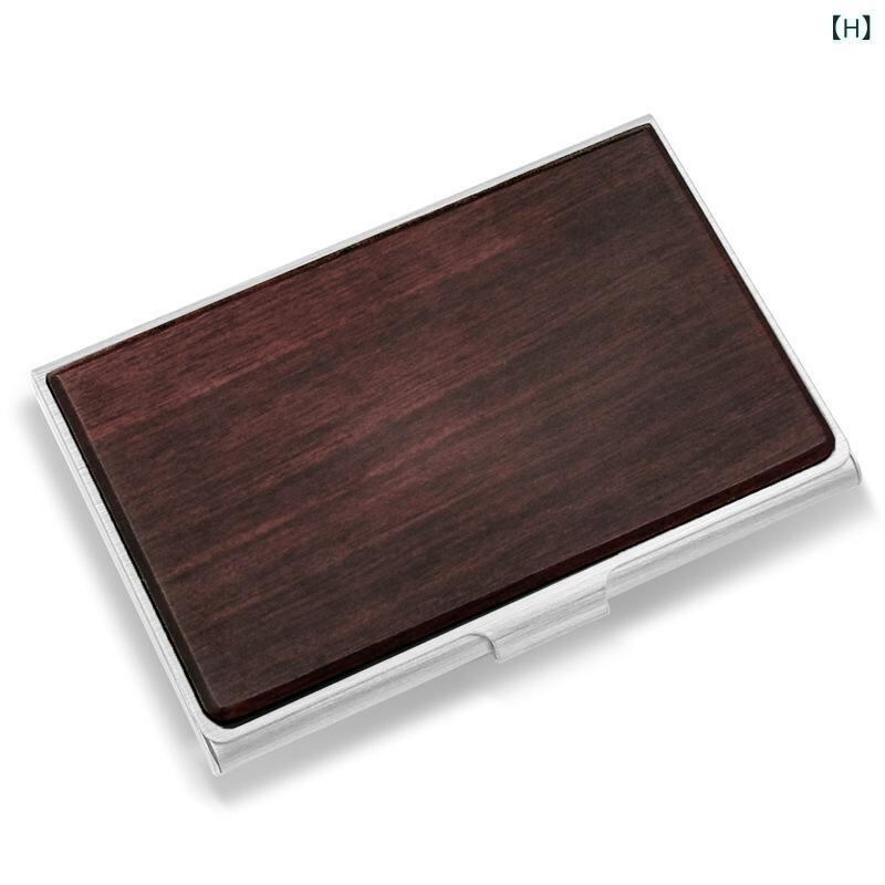 名刺入れ ステンレス製 天然木 両面貼り 電気メッキ加工 ビジネス カードケース 高級感 おしゃれ 大容量 13枚収納 ウォールナット チェリー ウッドデザイン 男性用 贈答用