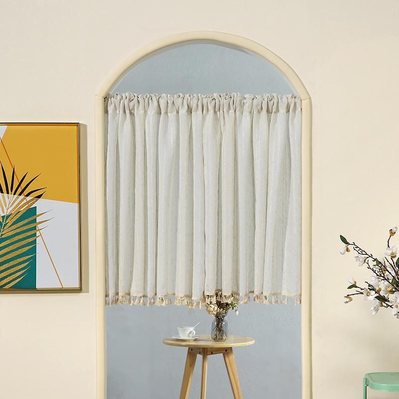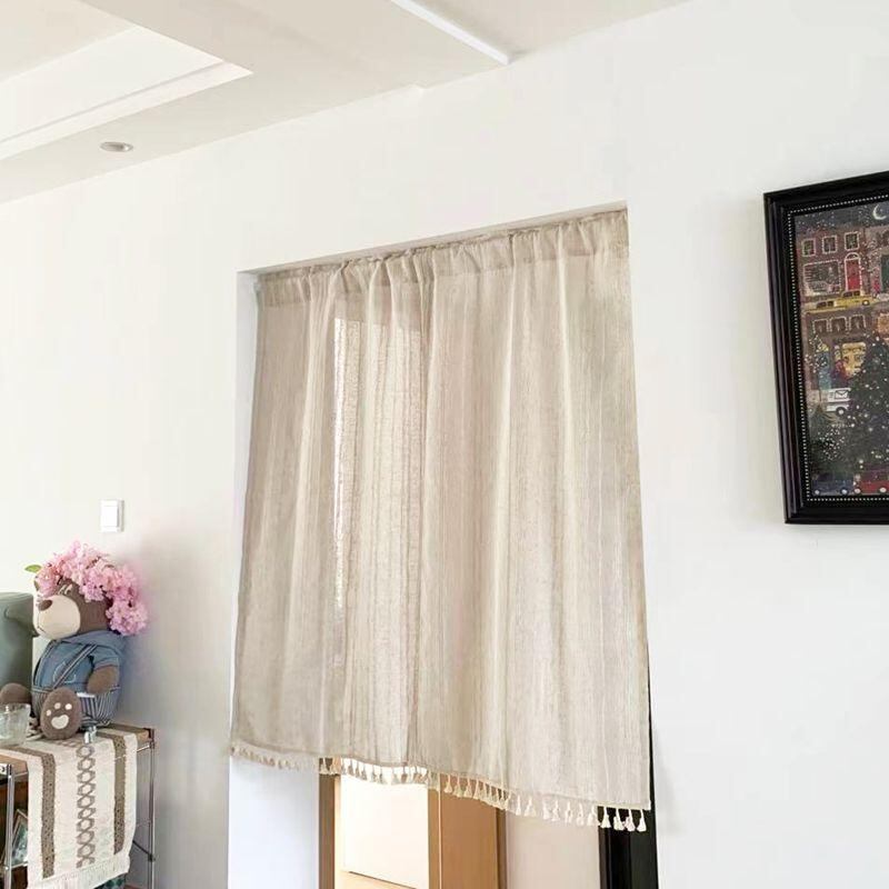 のれん 和風 綿麻 リネン風 間仕切り 目隠し カーテン 小窓 出窓用 リビング 書斎 茶室 玄関 ベージュ ストライプ柄 ナチュラル おしゃれ