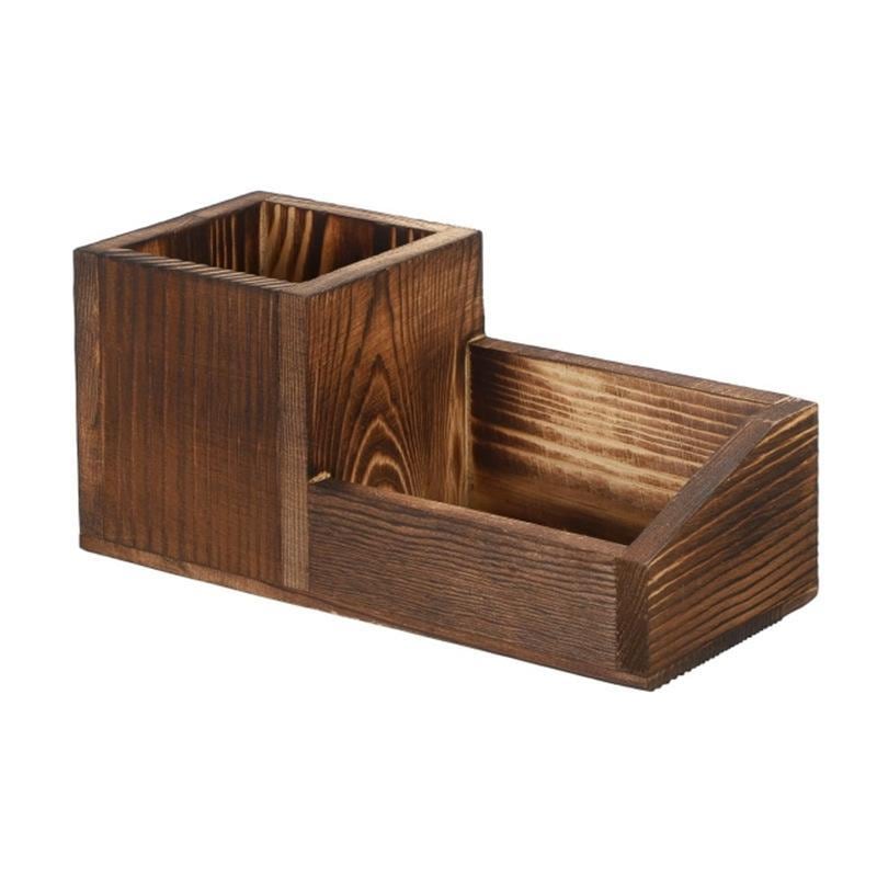 名刺入れ ペン立て 木製 無垢材 デスク 卓上収納ボックス 仕切り付き 多機能 整理 受付 フロント オフィス 書斎 リビング モダン シンプル レトロカラー