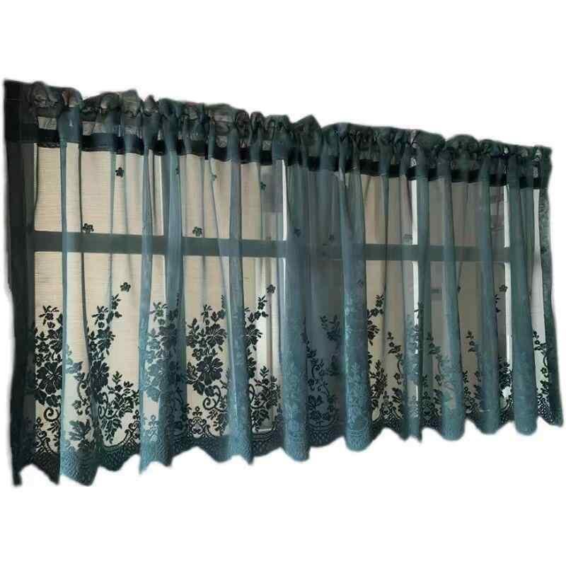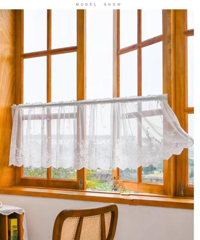 カーテン レース カフェカーテン ショート丈 小窓用 目隠し 穴あけ不要 突っ張り式 ポリエステル 花柄 アメリカンデザイン キッチン 出窓 寝室 書斎 リビング ダイニング 玄関 白 オフホワイト ピンク グリーン