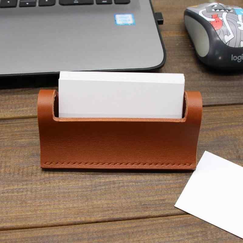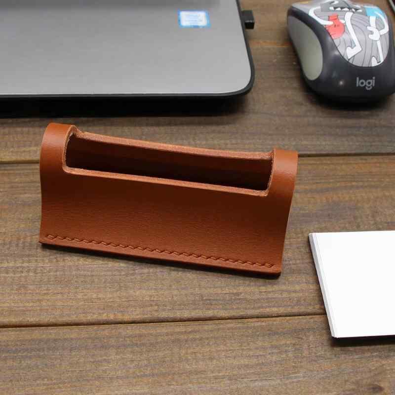 名刺入れ PUレザー 合成皮革 デスク 卓上 スタンド ディスプレイ オフィス ビジネス 受付 会議 事務用品 30枚収納 シンプル スマート カードホルダー 黒 茶色