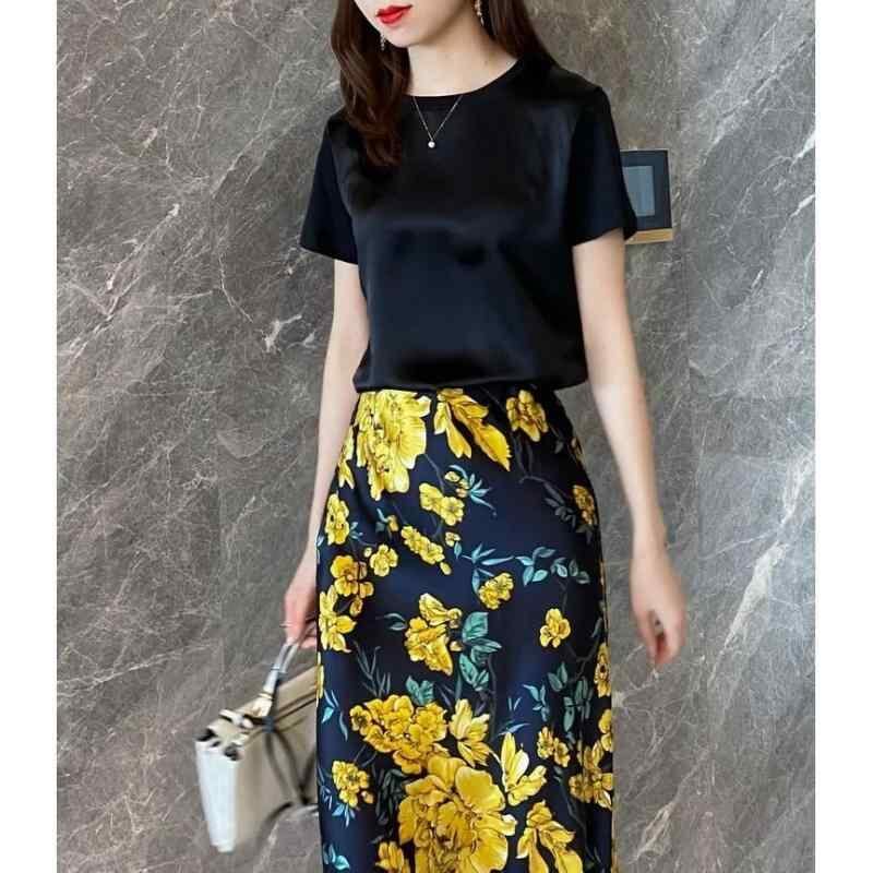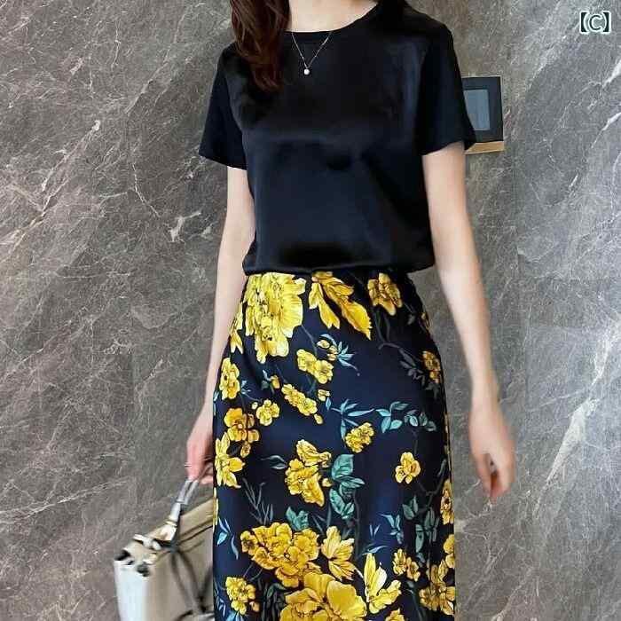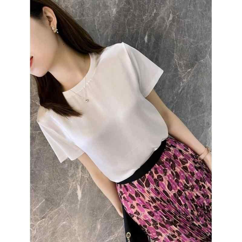 Tシャツ レディース カットソー 春夏 シルク 半袖 クルーネック ゆったり ストレートシルエット 個性的 デザイン 上品 エレガント きれいめ 普段使い オフィス カジュアル トップス