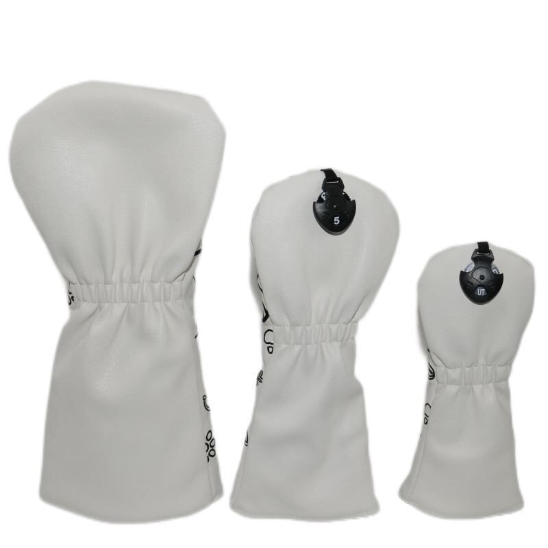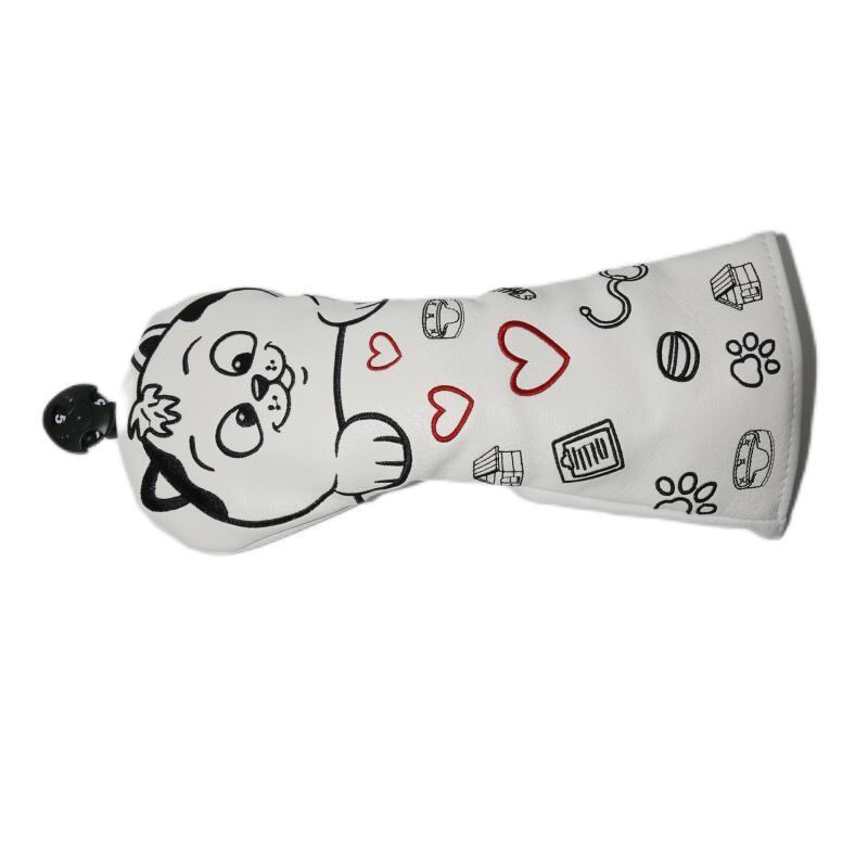ゴルフ ヘッドカバー ハート 猫柄 ドライバー フェアウェイウッド ユーティリティ PUレザー ブラック ホワイト かわいい