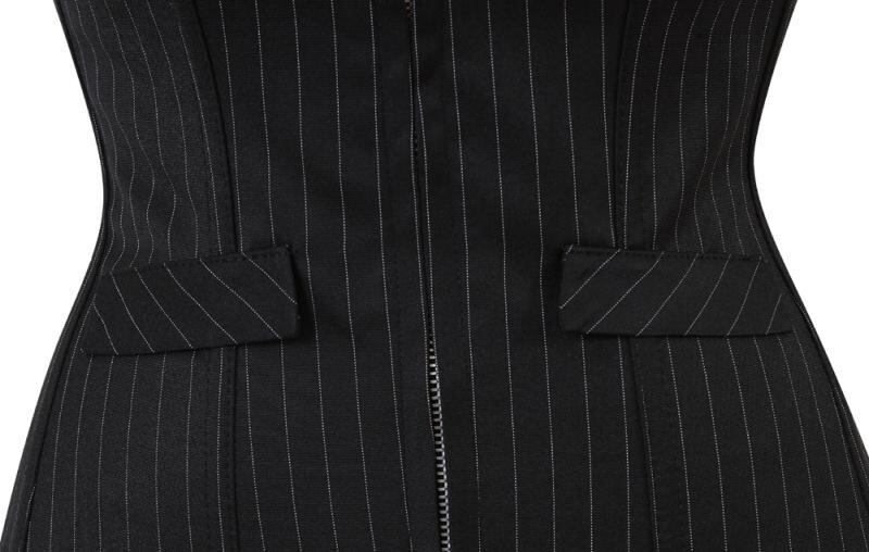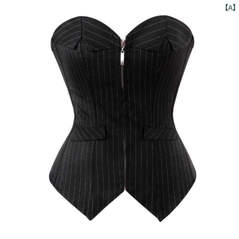 ビスチェ 補正下着 レディース シンプル 高級感 黒 ブラック スーツストライプ ボディシェイパー ウエストサポート お腹引き締め バストアップ スパンデックス 夏