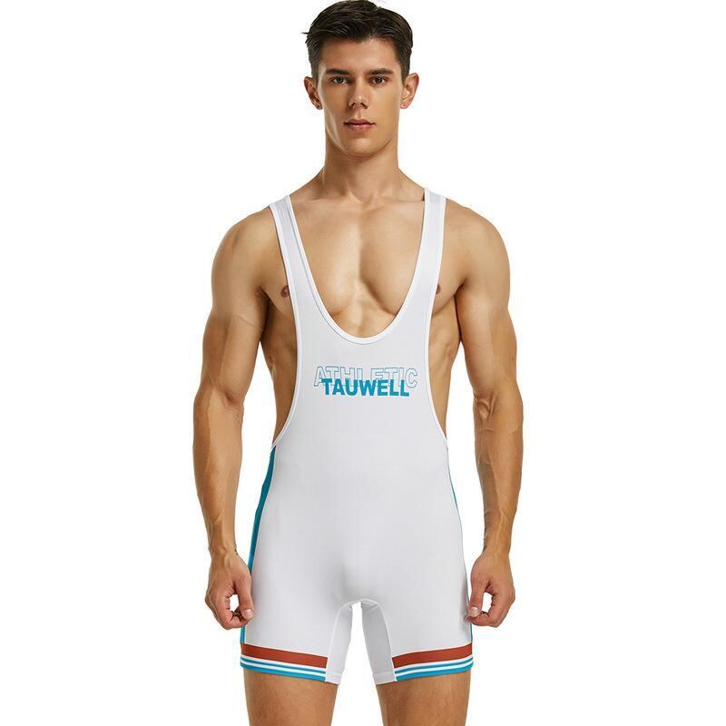 シングレット スポーツウェア メンズ レスリング トレーニング フィットネス ジム ランニング 一体型 ポリエステル 吸湿速乾 伸縮性 ブルー ホワイト 春夏秋