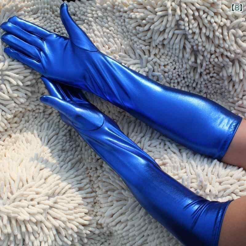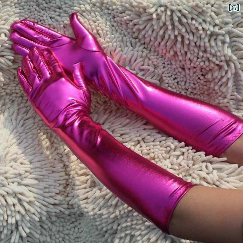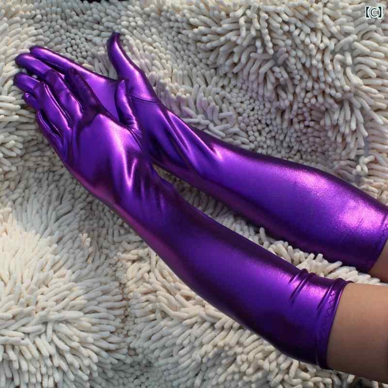 グローブ ユニセックス セクシー エナメル ロング ぴったりフィット フルフィンガー コスプレ ポールダンス 衣装 パフォーマンス イベント 小物 アクセサリー 黒 赤 青 紫 銀 金 ローズレッド