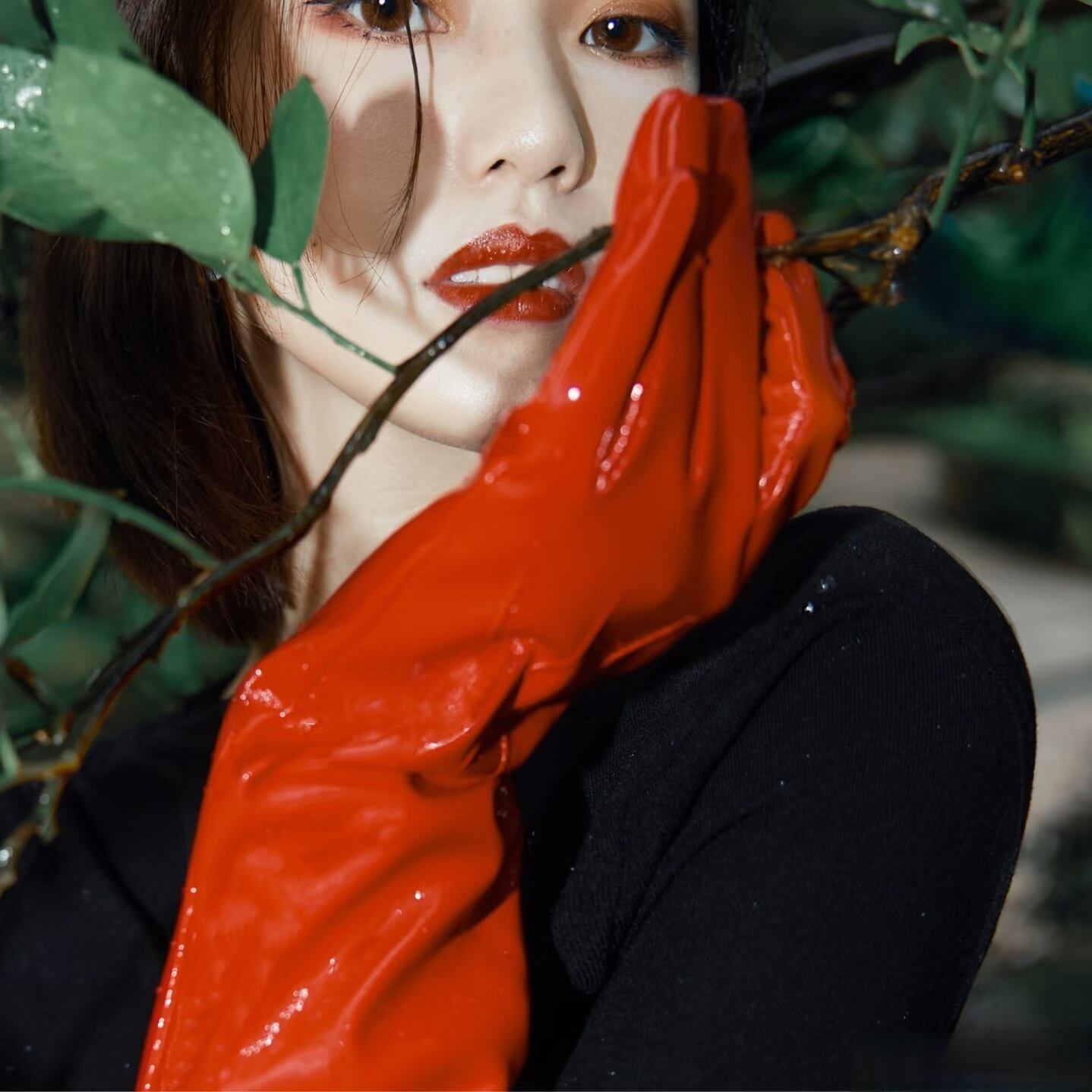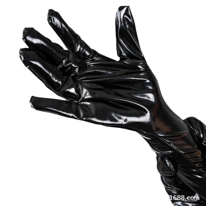 手袋 レディース セクシー ブラック ロング エナメル調 光沢 フェイクレザー タイトフィット コスプレ ポールダンス パフォーマンス グローブ パンク ロック スタイル