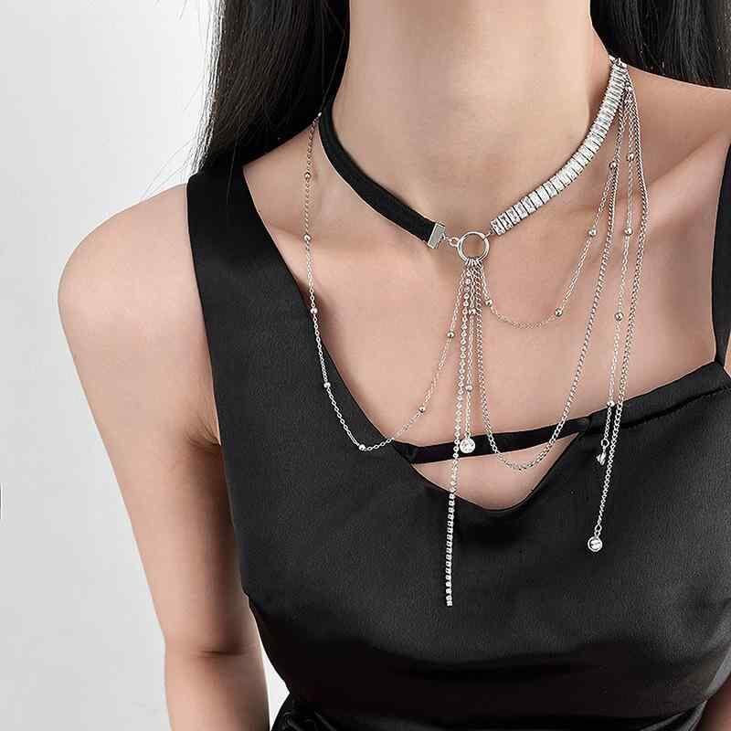 アクセサリー レディース 欧米風 高級感 個性的デザイン ジルコニア タッセル シルバー 合金 ボディチェーン ネックレス レッグチェーン 2WAY 秋冬