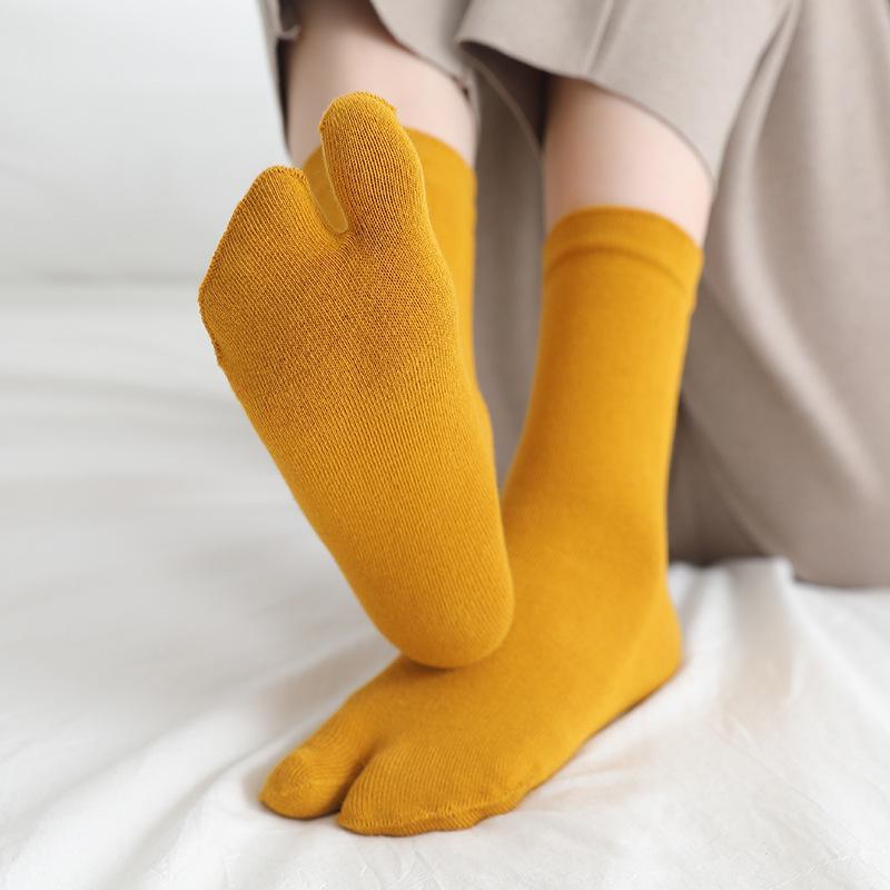ソックス レディース 女性用 足袋 二本指 靴下 綿 コットン ミドル丈 クルー丈 かわいい 下駄 和装 普段使い 抗菌防臭 吸汗速乾 オールシーズン 通年 ブラック ホワイト グレー イエロー ベージュ レッド グリーン系