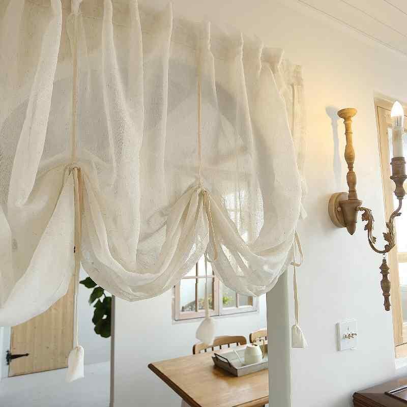 カフェカーテン のれん リネン 麻 アーチ型 レトロ ヴィンテージ マジックテープ式 タイアップ 昇降式 ローマンシェード 間仕切り ドアカーテン リビング 寝室 玄関 無地 ナチュラルテイスト