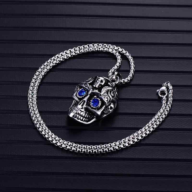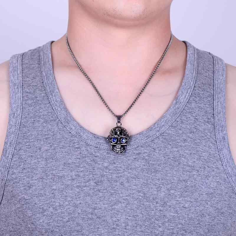 ネックレス メンズ ハロウィン ドクロ スカル チタン鋼 ステンレス メッキ加工 ペンダント レトロ ビンテージ ロング 約60cm スクエアチェーン バイカラー シルバー カジュアルスタイル