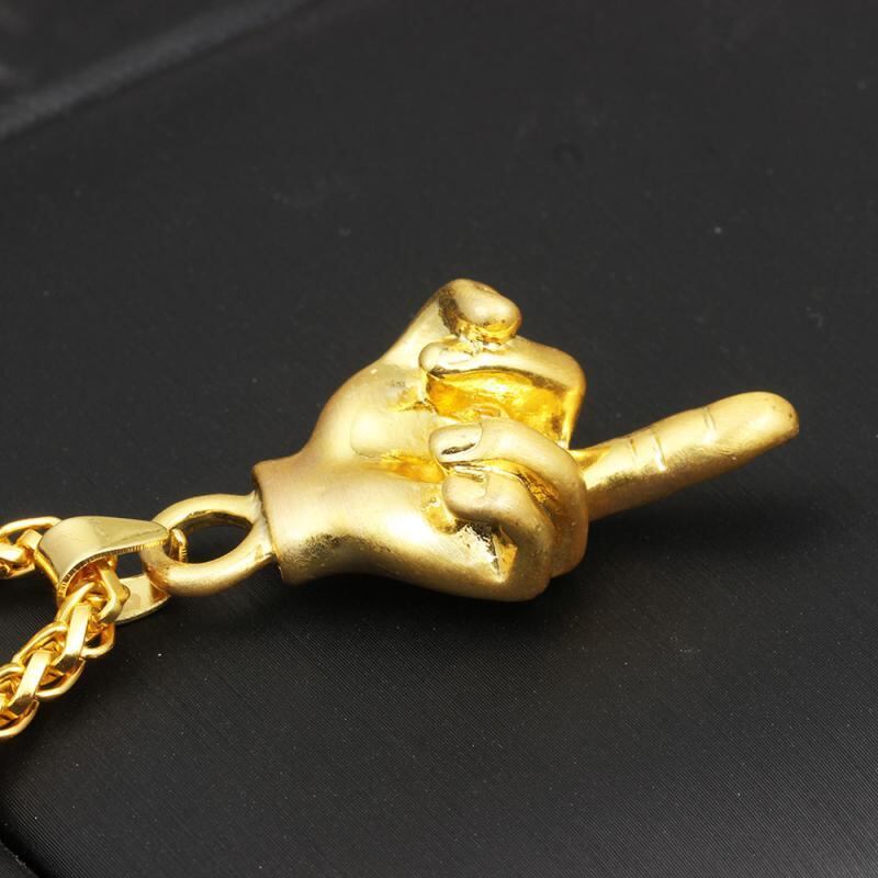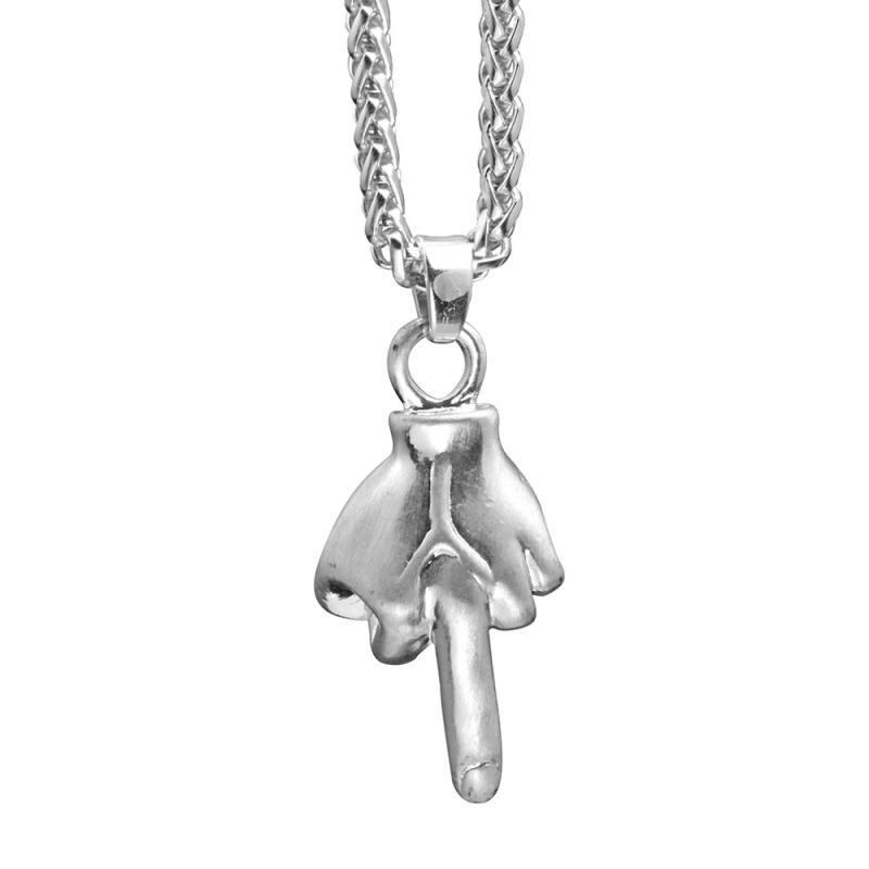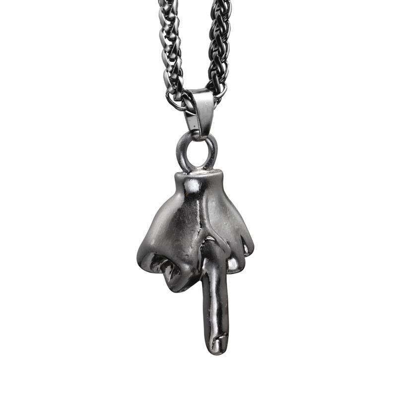 ネックレス メンズ 男性用 欧米風 中指モチーフ ヒップホップ ストリート ペンダント アクセサリー 合金製 電気メッキ加工 フェイクゴールド 変色防止 ガンメタリック