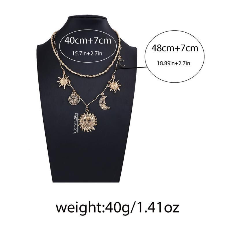ネックレス レディース 個性的 レトロ風 ヴィンテージスタイル デザイン性 太陽 月 モチーフ ペンダント 2連 重ね付け 合金製 チェーン 普段使い デイリーユース おしゃれ 大人かわいい 上品 エレガント トレンド