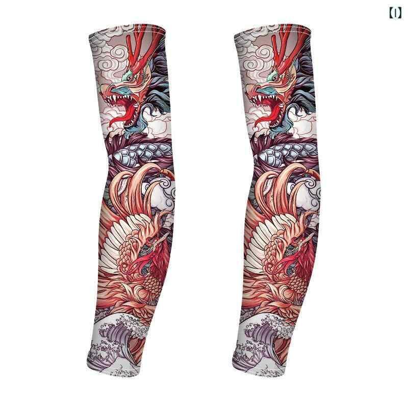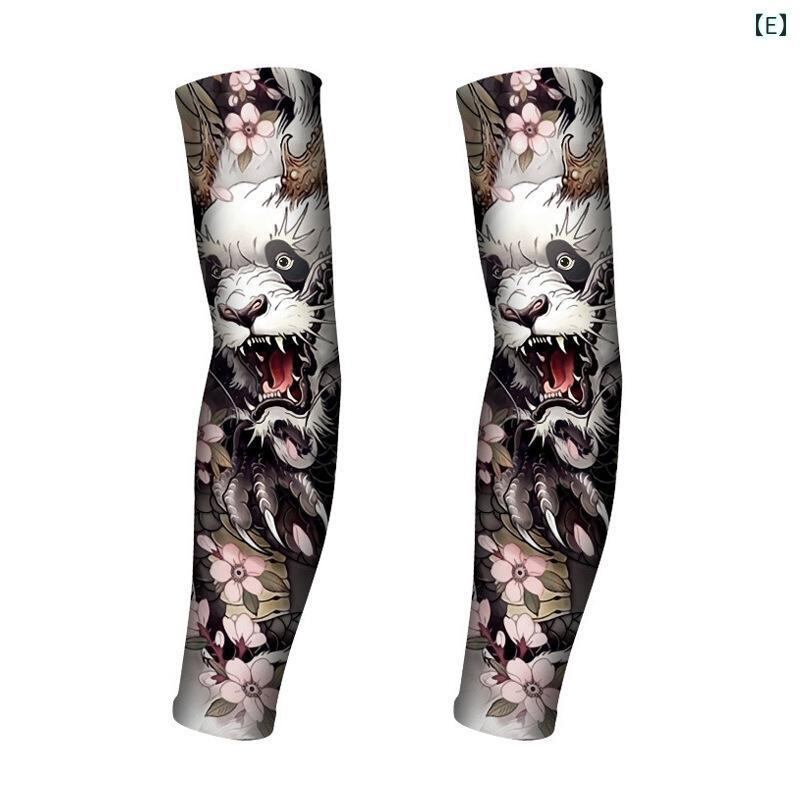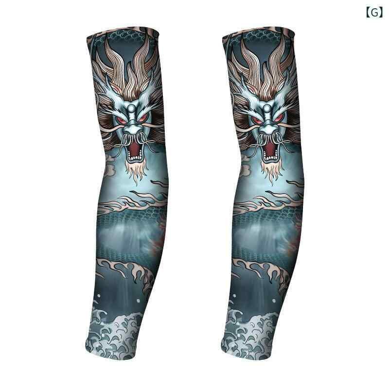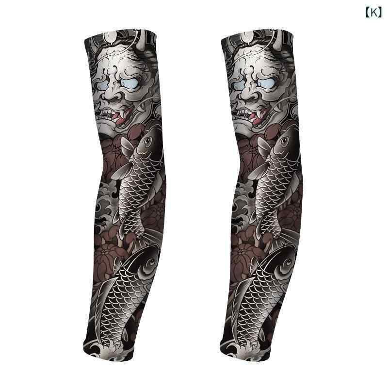 アームカバー メンズ 夏用 接触冷感 UVカット タトゥー柄プリント 通気性 速乾 サイクリング アウトドア スポーツ 日焼け防止 腕カバー