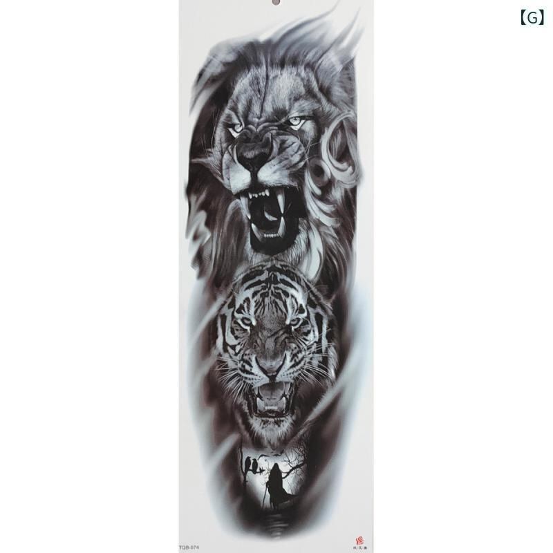 タトゥーシール 男女兼用 虎 獅子 動物柄 猛獣柄 ビッグサイズ 全腕用 アームカバー 防水 水転写式 コスプレ イベント フェス ファッション リアル 大判