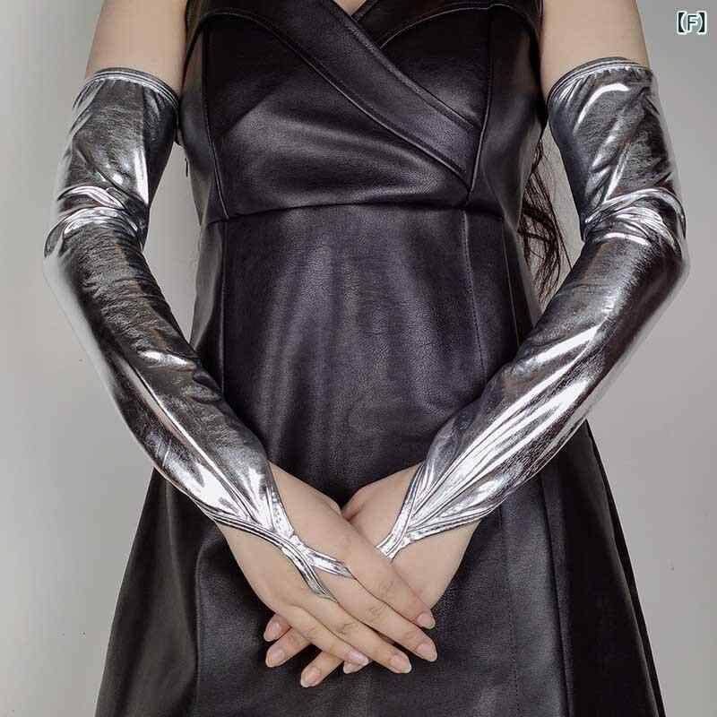 手袋 レディース ハロウィン コスプレ ポールダンス セクシー 魅惑的 指なし グローブ エナメル 光沢 合皮 フェイクレザー ダンス衣装 ステージ イベント ダーク