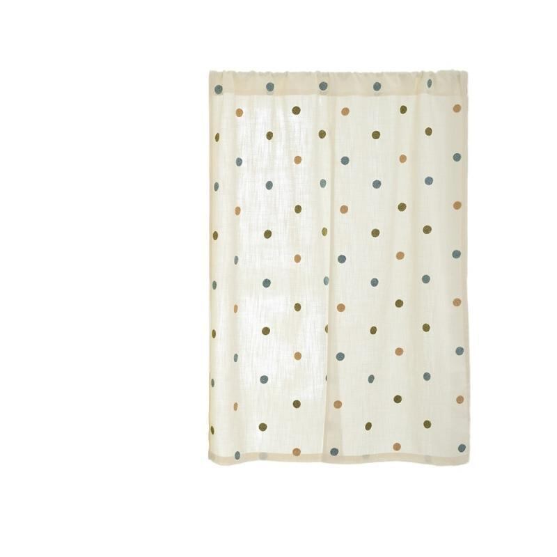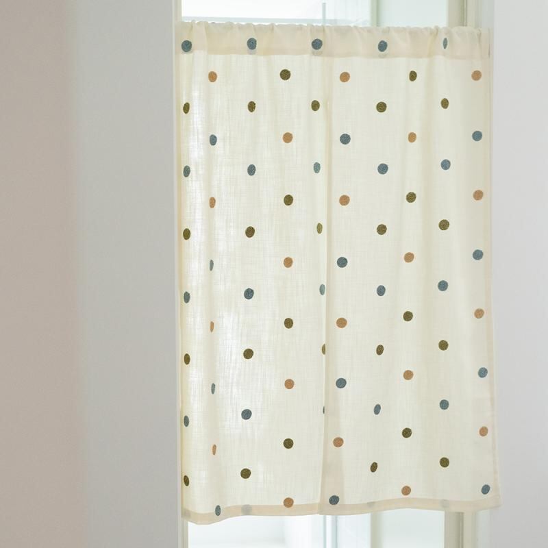 門簾 和風 韓国風 ドット柄 刺繍 綿麻 混紡 オフホワイト シンプル モダン 突っ張り棒対応 穴あけ不要 間仕切り 目隠し ショート丈 分割式 玄関 リビング ダイニング 寝室用
