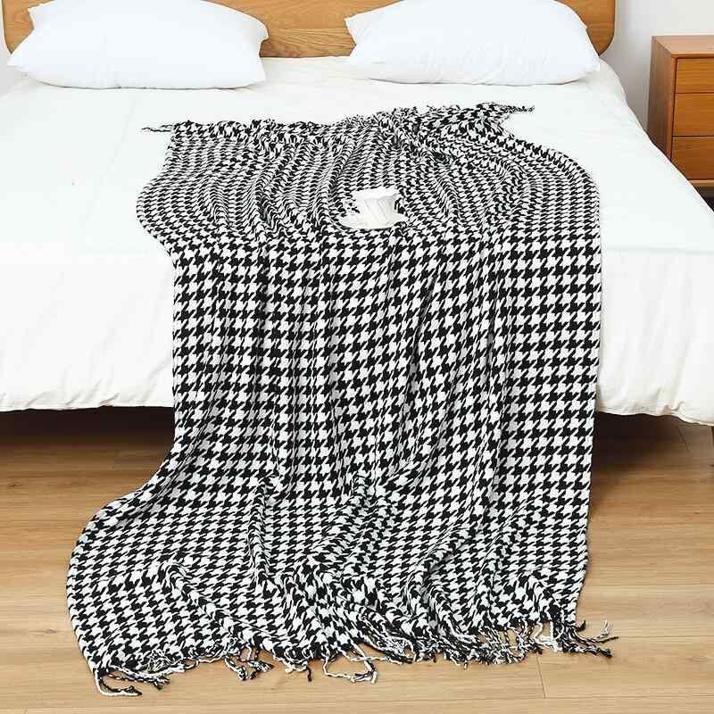 ブランケット 千鳥格子 ボヘミアン アクリル ニット フリンジ ソファカバー ベッドスロー ひざ掛け お昼寝 オフィス アウトドア マルチカバー おしゃれ オールシーズン