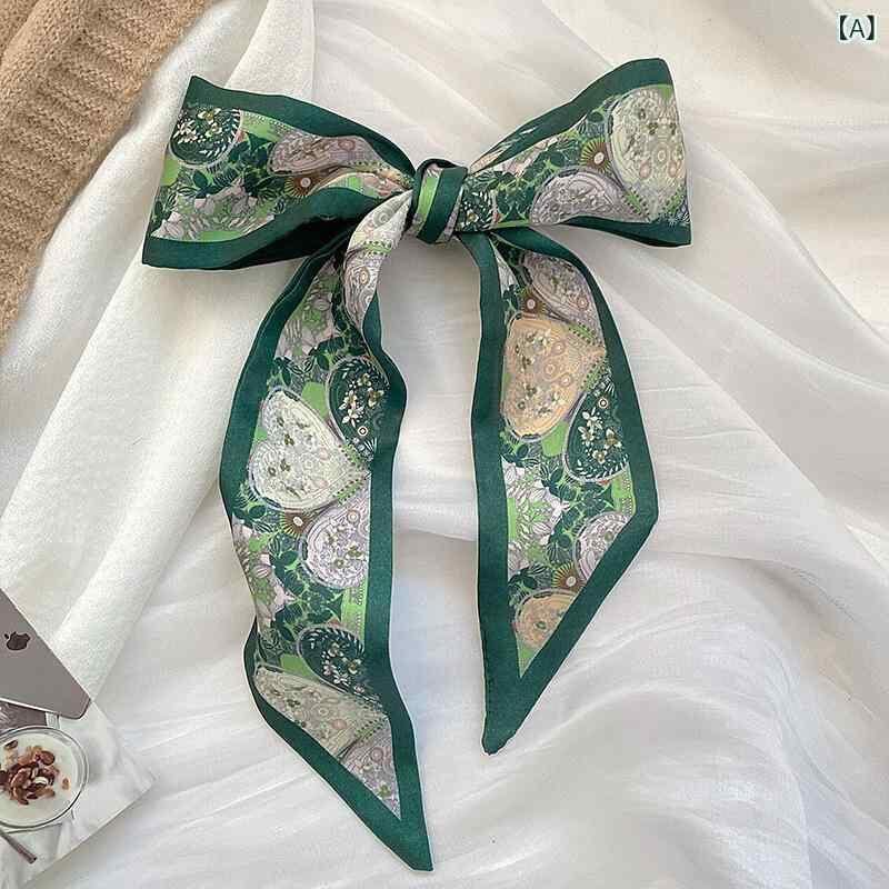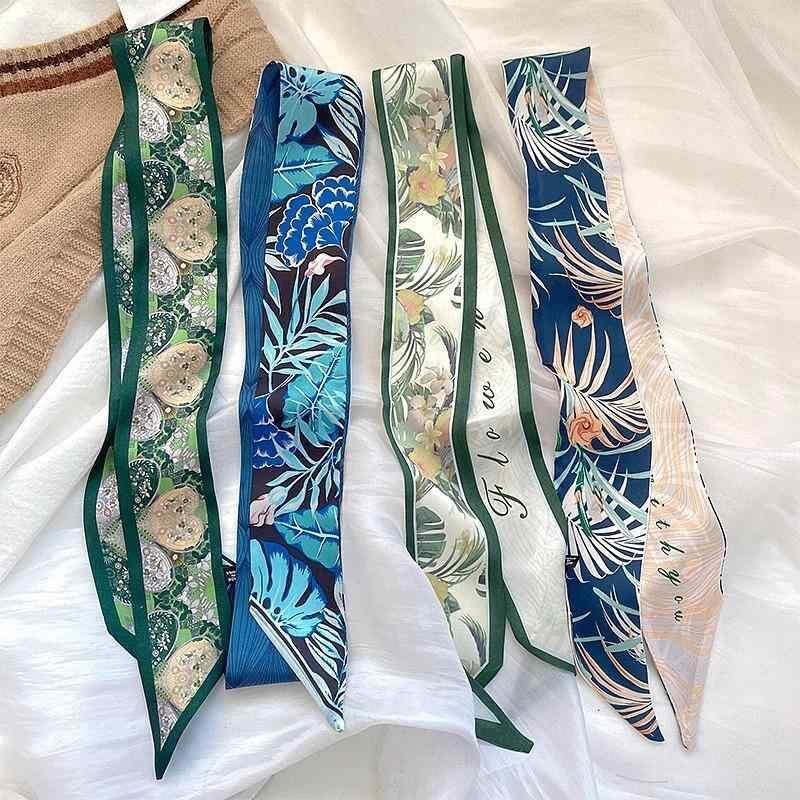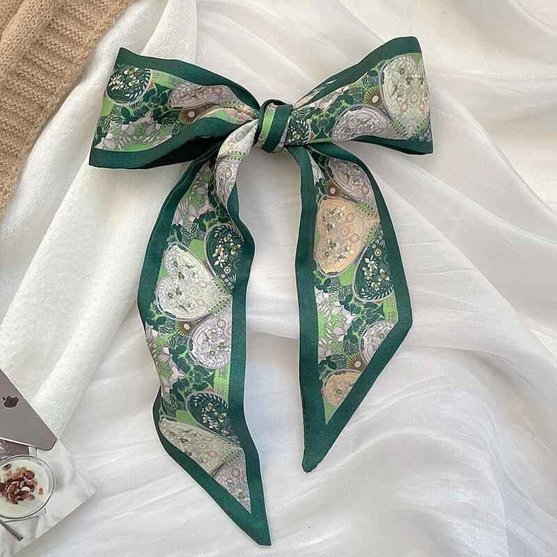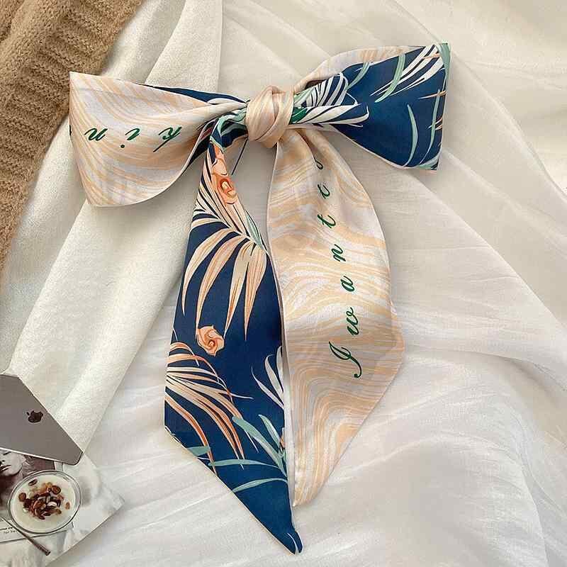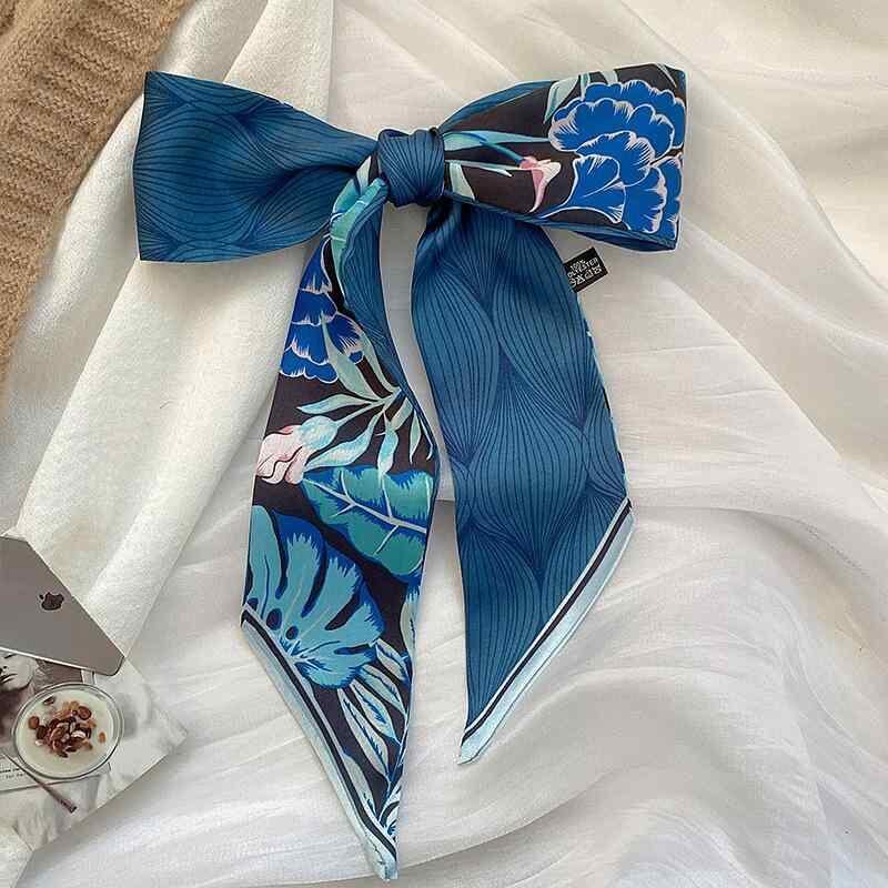 リボン スカーフ レディース 春夏 細長 ヘアアクセサリー ポニーテール バッグチャーム 多機能 万能 ポリエステル 花柄 プリント エレガント カジュアル