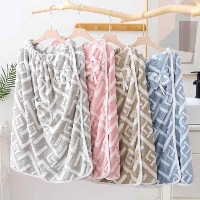 バスタオル バスローブ レディース チューブトップ 巻きタオル サンゴフリース ふわふわ ポリエステル エステ スパ サウナ 温泉 ルームウェア 格子柄 ピンク カーキ ブルー グレー お風呂上がり