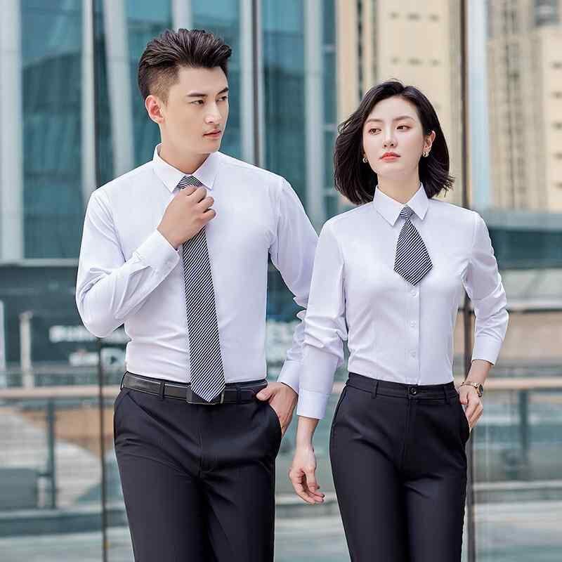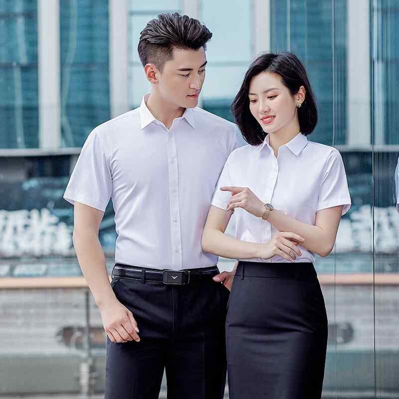 シャツ 男女兼用 半袖 長袖 作業服 制服 オフィス ビジネス 仕事用 白 ワイシャツ 吸湿速乾 綿混 ポリエステル ワークウェア 春夏
