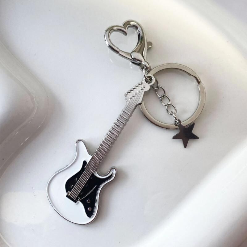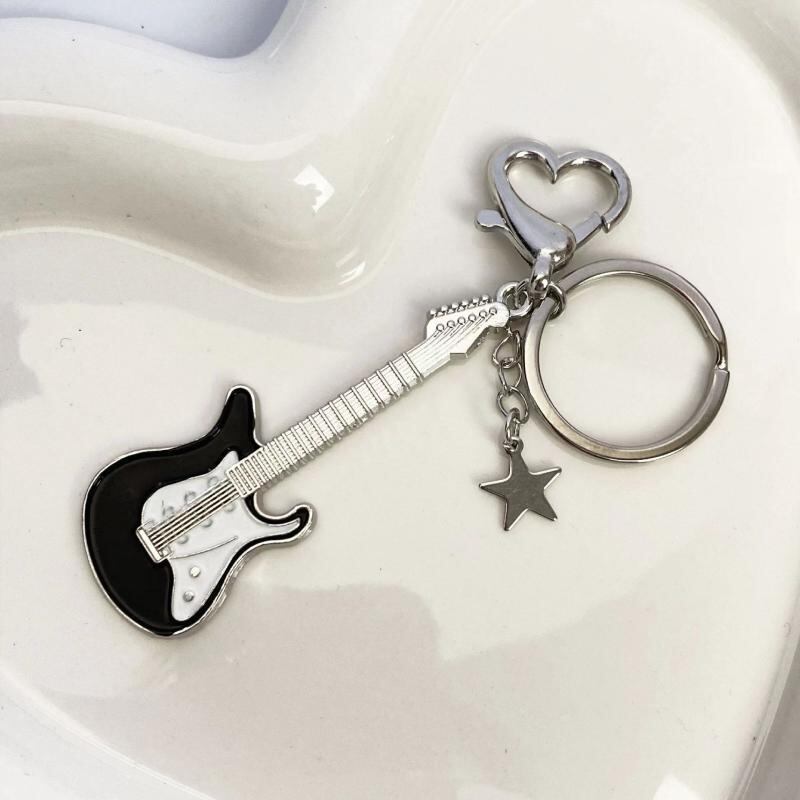 キーホルダー バッグチャーム パンク Y2K サブカルチャー アメリカンヴィンテージ ギター 五芒星 スター 合金製 電気メッキ 個性的 ストリート 春夏 ホワイト ブラック