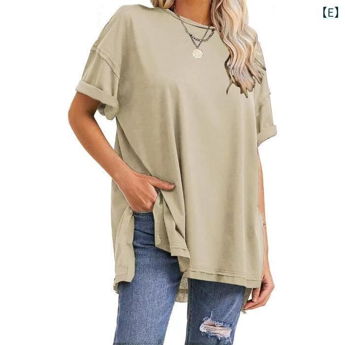 Tシャツ レディース 春夏 大きいサイズ ゆったり オーバーサイズ ドロップショルダー 半袖 クルーネック 無地 きれいめ カジュアル 切り替え ポリエステル プルオーバー レギュラー丈 トップス