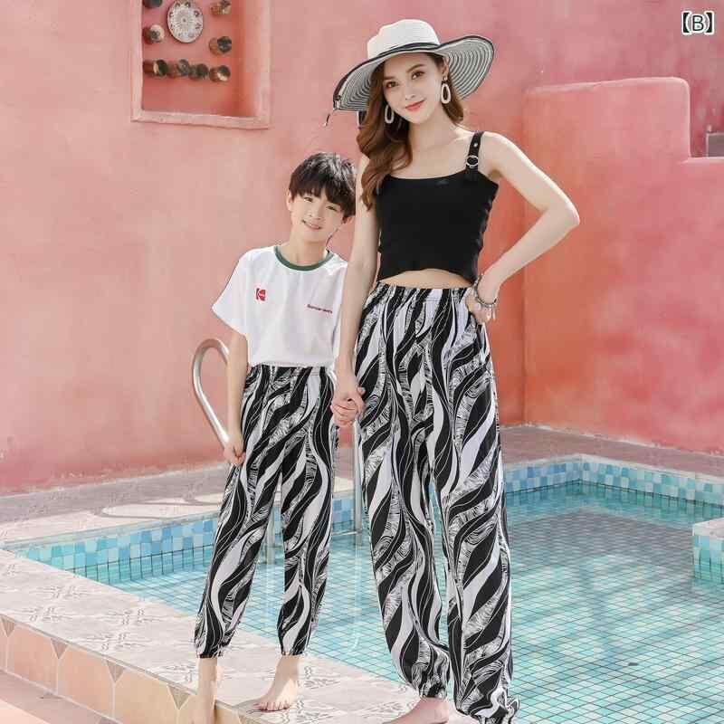 パンツ キッズ 男の子 女の子 男女兼用 夏 薄手 コットン 涼しい 蚊よけ ロング丈 バルーンパンツ 親子ペア カジュアル 部屋着 普段使い リゾート