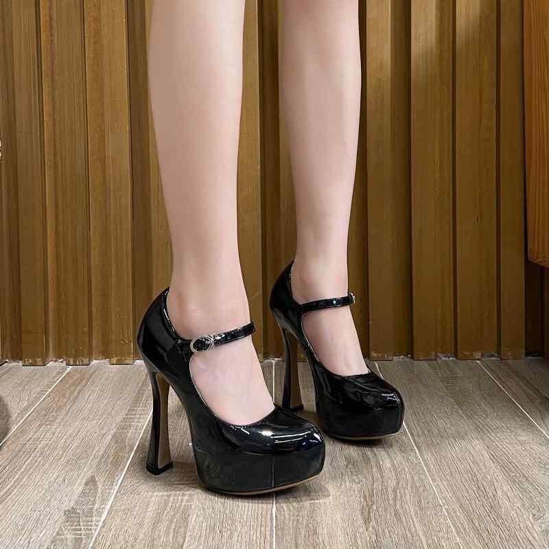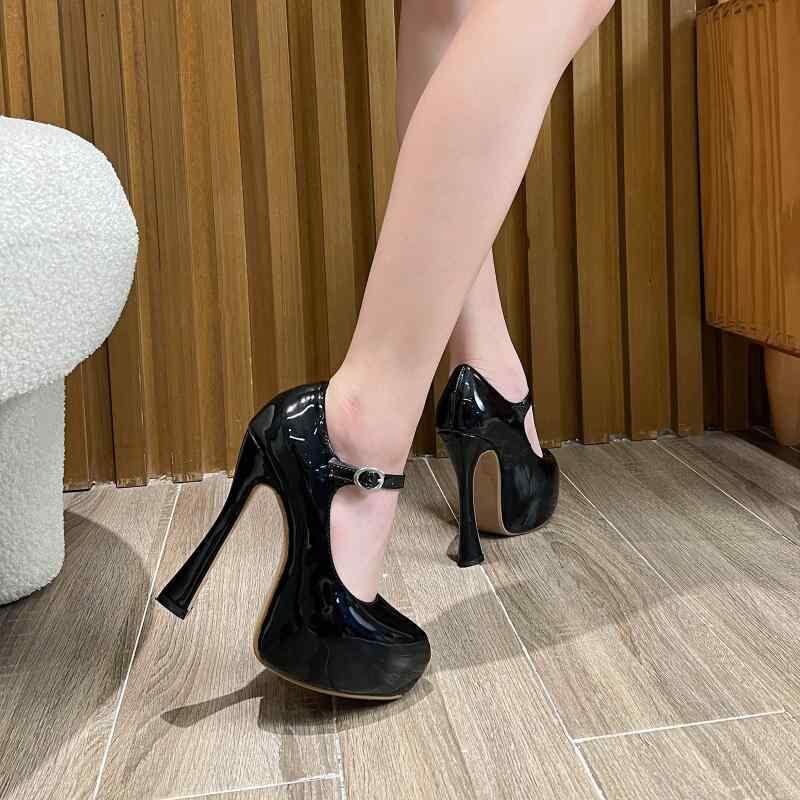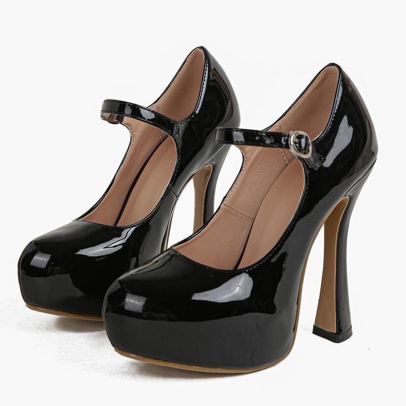 パンプス レディース 厚底 ストーム 細ヒール 超ハイヒール アンクルストラップ ラウンドトゥ 浅め 無地 セクシー PUレザー パーティー フォーマル 大きいサイズ