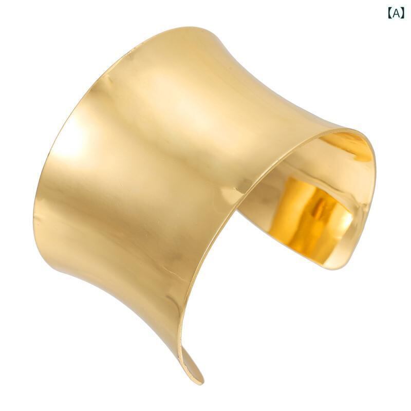 バングル レディース シンプル 欧米風 ファッション メタル 光沢 幾何学 曲線 大ぶり パンク オープンデザイン 電気メッキ加工 円形 春夏 通勤 お出かけ