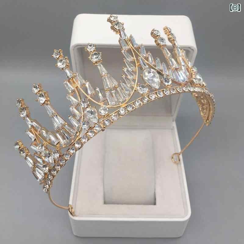 ティアラ ヘッドドレス レディース ヨーロピアン 王冠 クラウン ラインストーン 合金製 ブライダル ウェディング 結婚式 披露宴 誕生日 パーティー 前撮り 撮影用 シルバー ゴールドカラー 電気メッキ加工