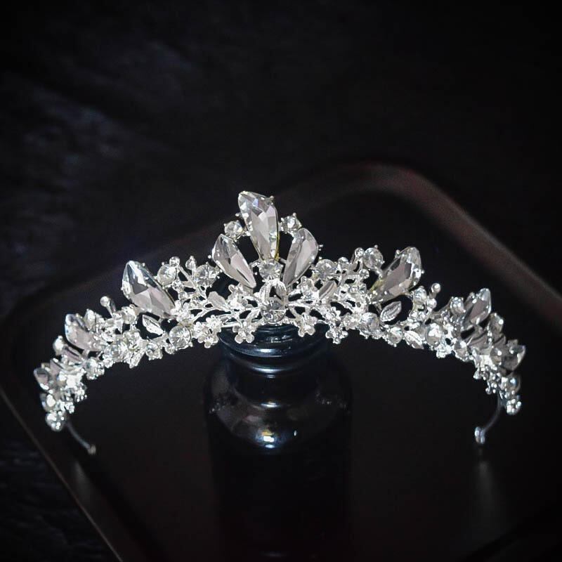 ヘアアクセサリー レディース ティアラ ラインストーン 合金 ウェディング 結婚式 ブライダル 花嫁 フォトウェディング 韓国風 シンプル おしゃれ プリンセス フラワーモチーフ ヘッドドレス 髪飾り ホワイト 電気メッキ加工