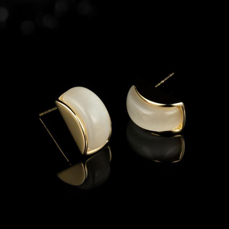 ピアス レディース キャッツアイ 半円 S925シルバーポスト 本金電気メッキ イヤリング モダン シンプル 上品 エレガント 個性的 ニッチ 幾何学 銅素材 普段使い デイリー 春夏 耳飾り