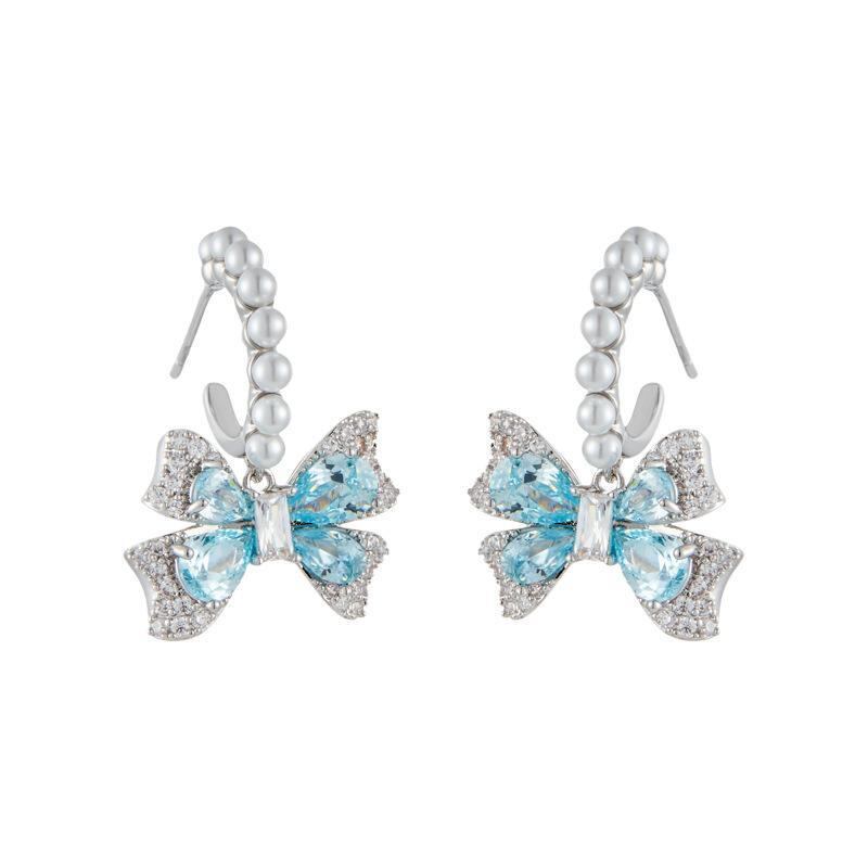 ピアス レディース エレガント リボン 蝶結び S925シルバーポスト マリンブルー ジルコニア 軽量 揺れる 精巧 上質 銅製 カジュアル フォーマル 春夏