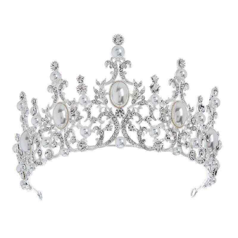 ヘアアクセサリー レディース ティアラ ヘッドドレス ヨーロピアンアンティーク 宮廷風 ウェディング ブライダル 結婚式 花嫁 フラワーモチーフ プリンセス ラインストーン パール ホワイト ゴールド 合金製