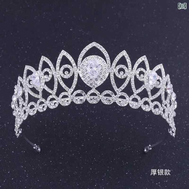 ティアラ レディース 花嫁 ウェディング 結婚式 披露宴 二次会 ブライダル ヘッドドレス 髪飾り クラウン ジルコニア ラインストーン クリスタル 合金製 シルバーカラー 高級感 エレガント 華やか フォーマル パーティー 発表会 演奏会