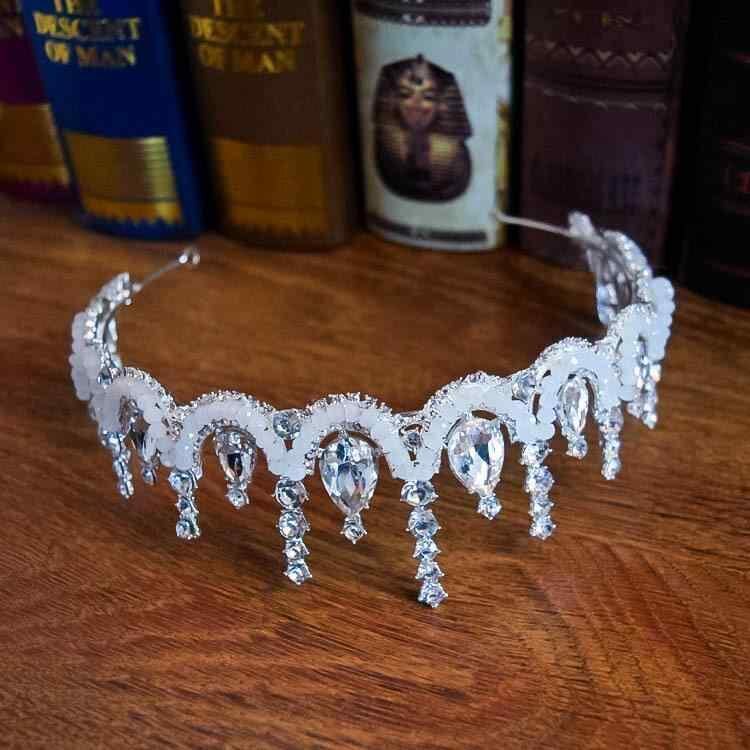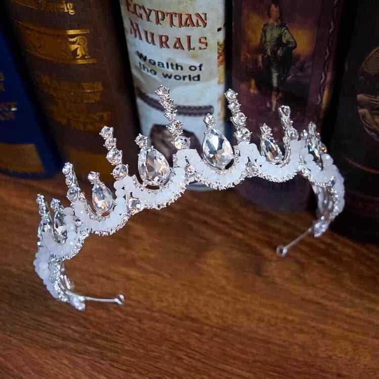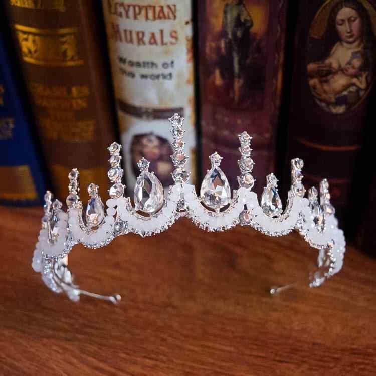 ティアラ 花嫁 ブライダル ウェディング ヘッドドレス バロック レトロ クラシカル 高級感 ハンドメイド クリスタル ホワイト 髪飾り 結婚式 挙式 披露宴 前撮り フォトウェディング