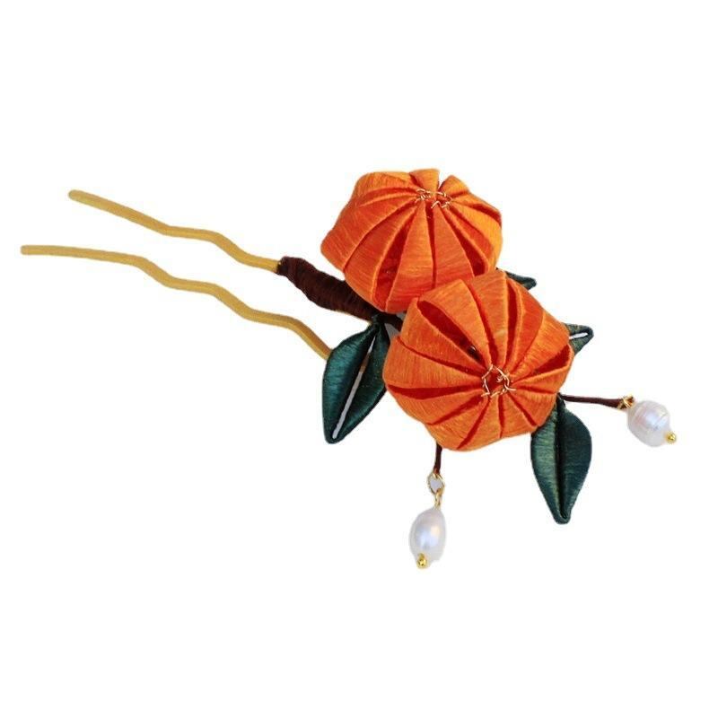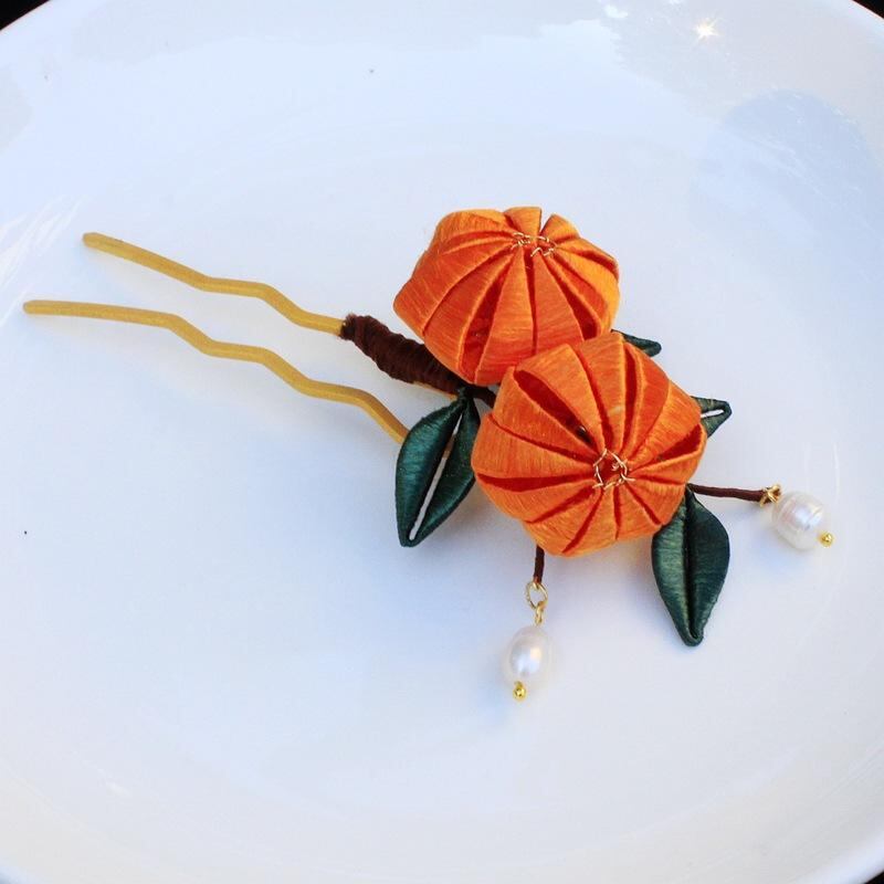 かんざし キッズ 漢服用 復古調 宮廷風 古風 伝統工芸風 巻花 蝶々 みかん 花モチーフ 布製 ヘアアクセサリー